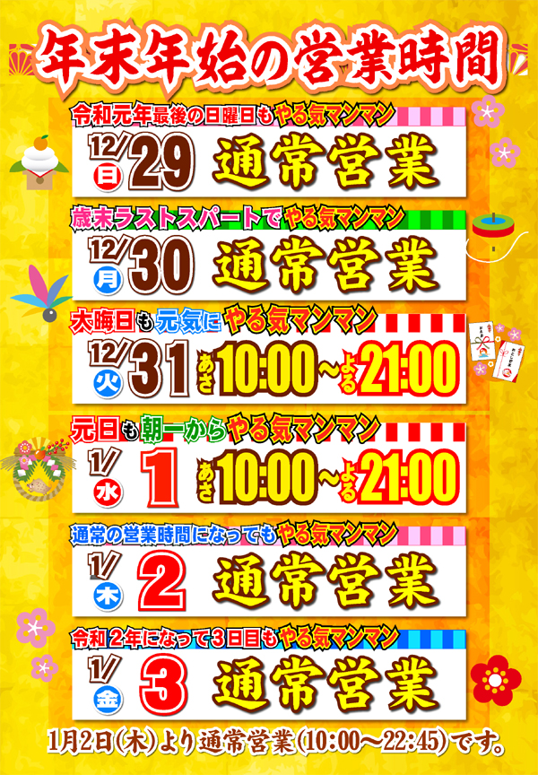 10:00~22:50(会員カードをお持ちのお客様は22:55まで) |