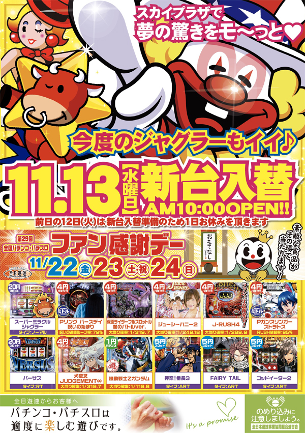 明日10時開店!【創業33周年!第②弾~新台入替初日~】