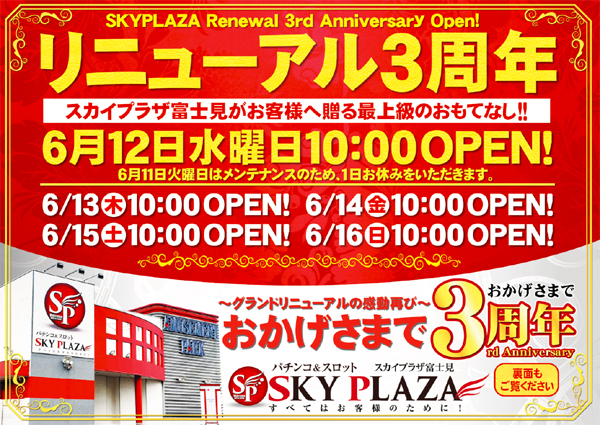 本日10時開店!【おかげさまで③周年~新台入替初日~】