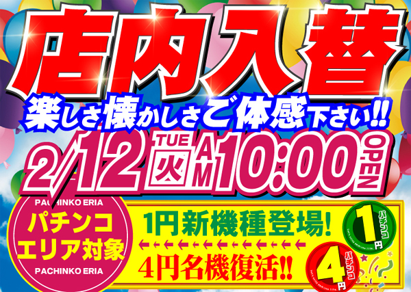 本日10時開店!【店内入替初日~パチ配置変更~】