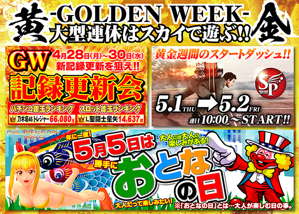 本日⑩時開店【スカイの黄金週間突入~週末やる気マンマン!~】