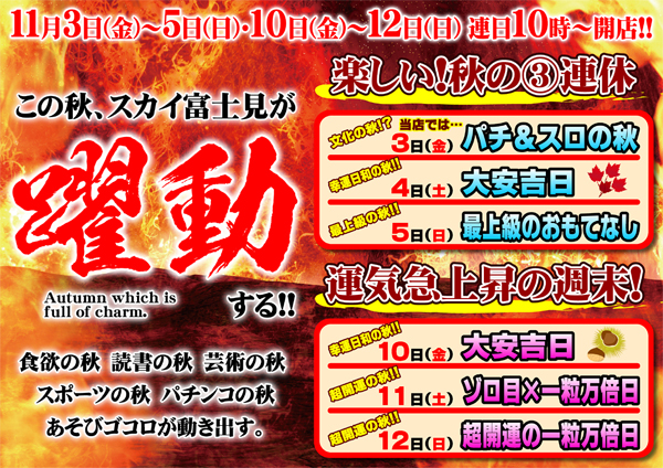 明日10時開店!【楽しい♪秋の③連休突入!】