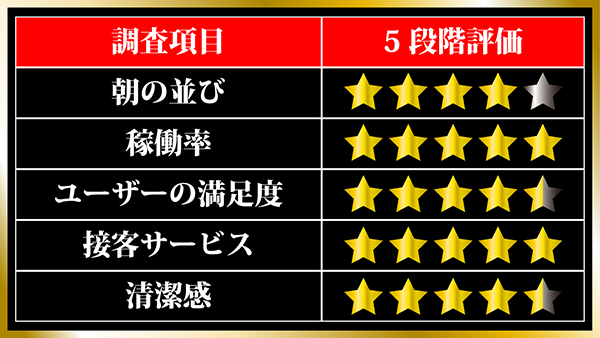 2円パチスロでは、朝イチから遊技を続けているプレイヤーもみられ、満足しているといったこともうかがえた。