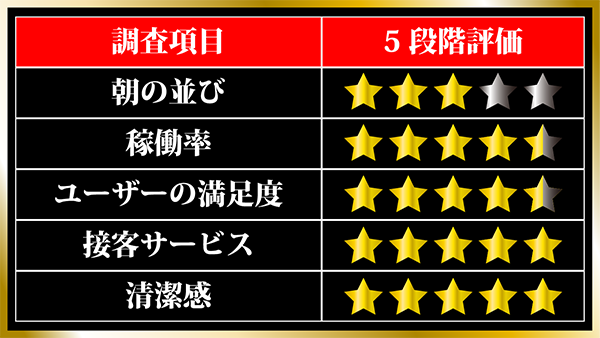 狙い通りの遊技ができているといった表情もみられ、充実した時間を過ごせているといった印象を受けた。