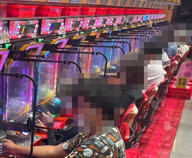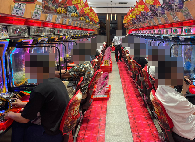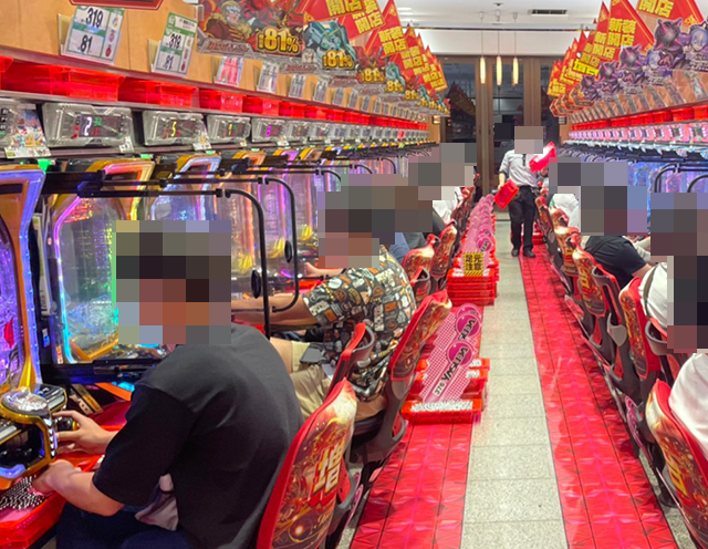 夕方頃のホール内に広がっていたのは、多くのプレイヤーが遊技をおこなうにぎやかな光景。