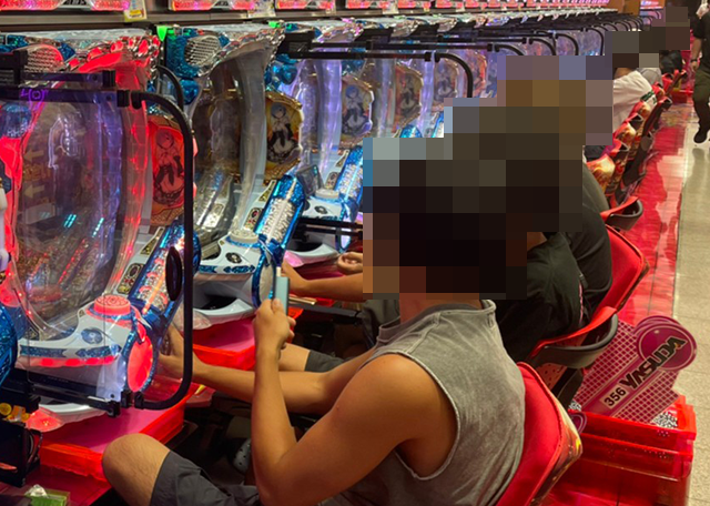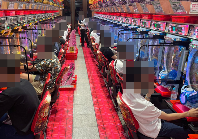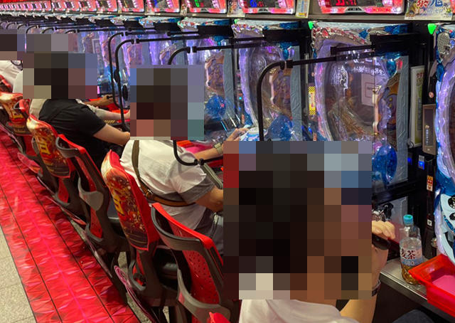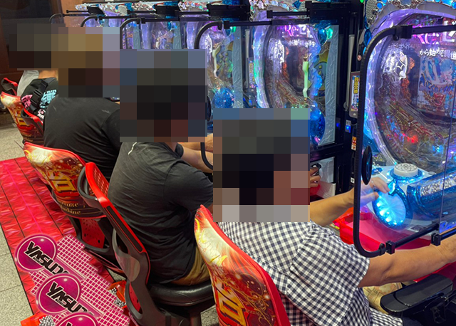 パチンココーナーを進んでいくと、随所に遊技を満喫しているような姿があった。