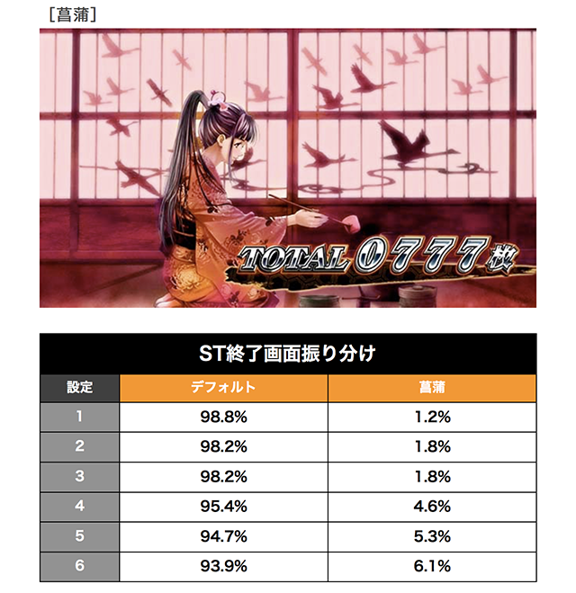 ST終了画面にも注目で、高設定ほど菖蒲が出現しやすい。