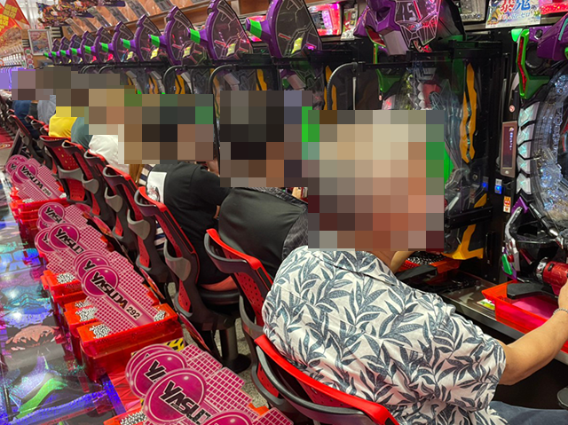 設置台数はホールでトップクラスに多い24台であり、17時頃はほぼ満席となっていた。