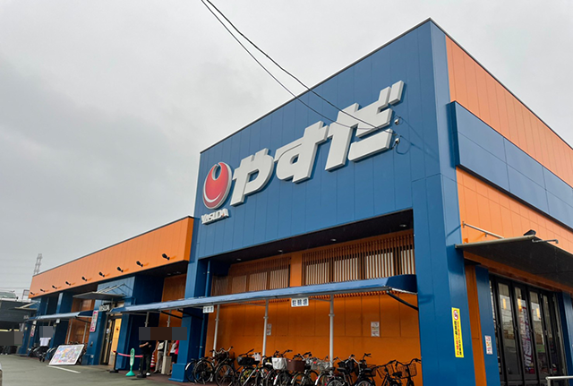 むかったさきは、オレンジと青の外観も特徴的な「やすだ三郷店」だ。