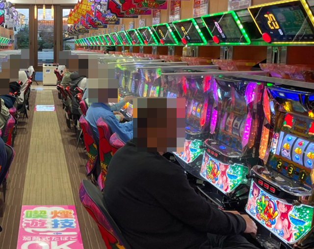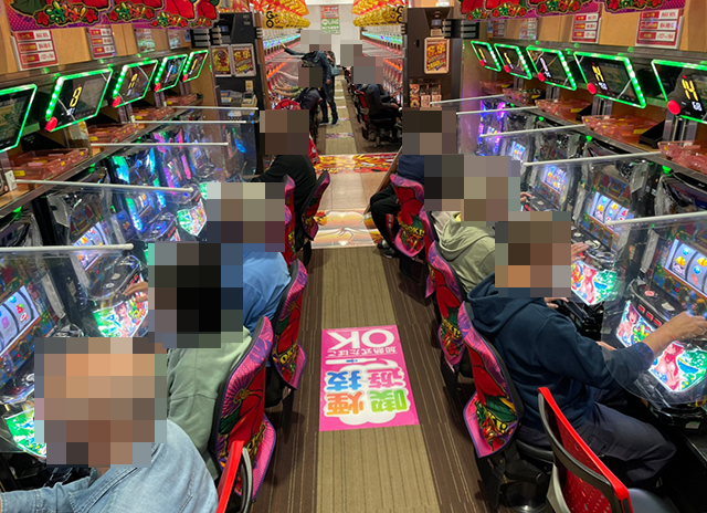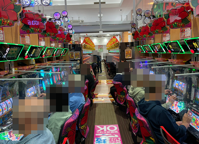 笑顔で遊技をおこなっている姿が多く、店内は盛況となっていた。