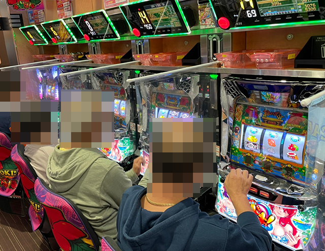 16時頃は10台中7台が稼働しており、プレイヤーたちは遊技を満喫している様子。