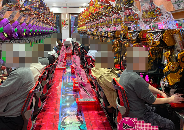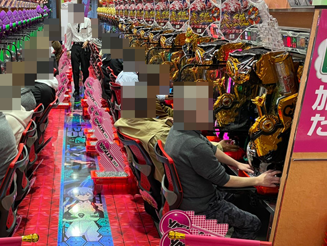パチンコだけでなく、パチスロも好評。ホール全体の雰囲気が明るく、プレイヤーたちは心から遊技を楽しめている様子であった。