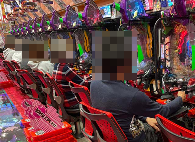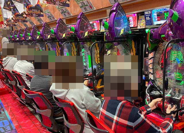 店内をのぞくと、パチスロとパチンコの両方がにぎわっていた。