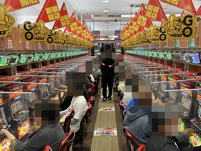 楽しげなプレイヤーが多く、パチンコとパチスロの両方で笑顔がみられた。