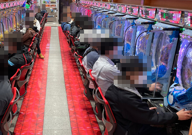 パチンコだけでなく、パチスロにも楽しげなプレイヤーがいるなど、魅力的なシーンが満載のホールであった。