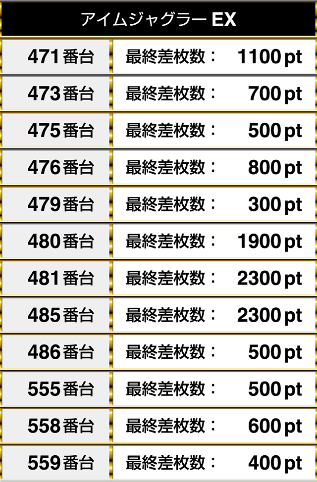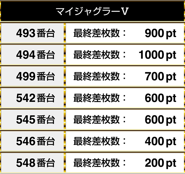 『マイジャグラーⅤ』は16台中7台がプラスptでこの日を終えた。