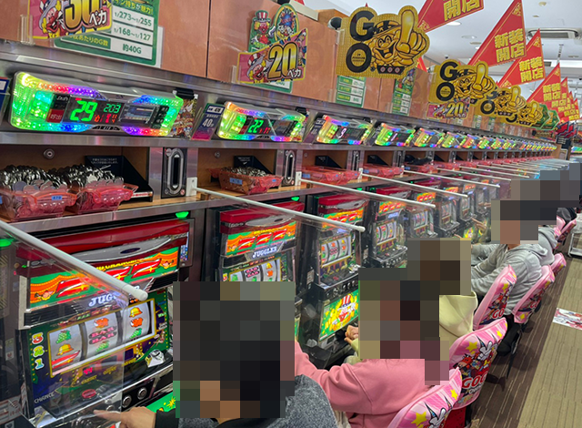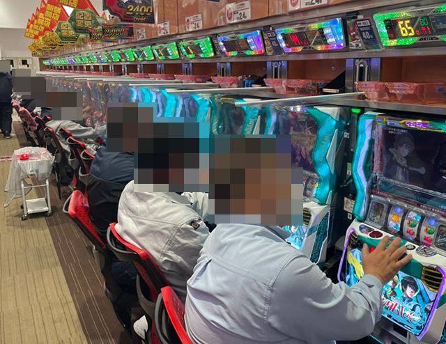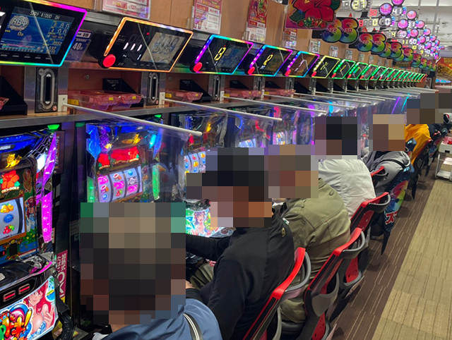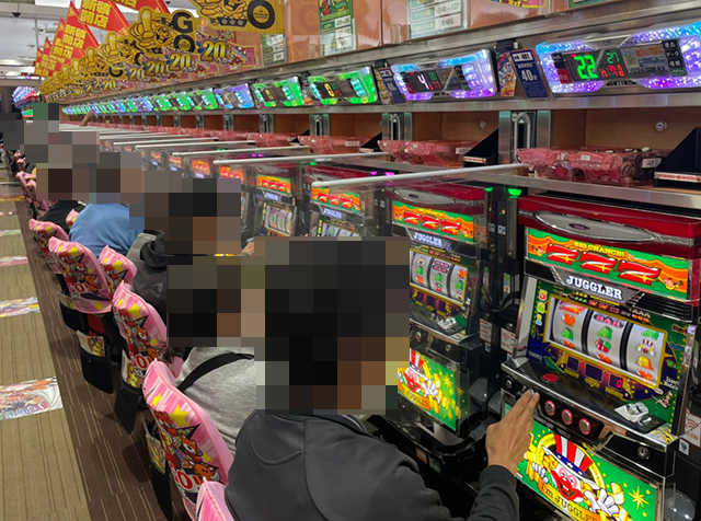 パチスロの状況をうかがうと、『アイムジャグラーEX』で多くのプレイヤーが遊技を楽しんでいた。