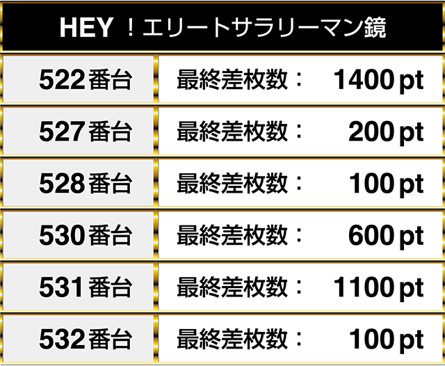 『HEY!エリートサラリーマン鏡』は12台中6台がプラスptを記録!