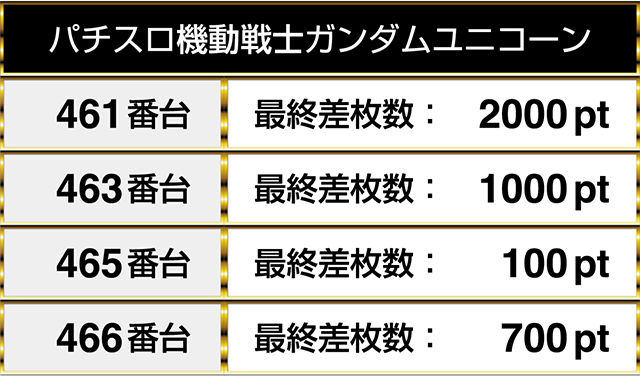 『パチスロ機動戦士ガンダムユニコーン』は4台がプラスptとなり、1台は2000pt!!
