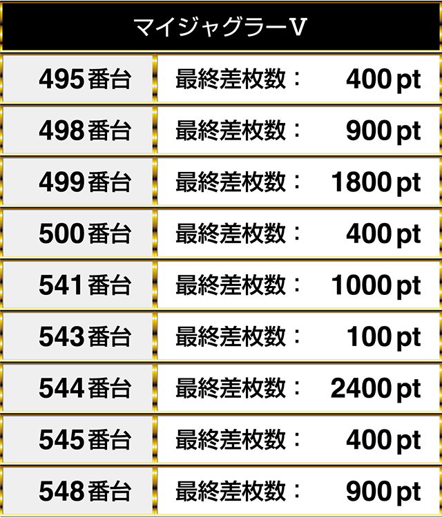 16台設置の『マイジャグラーⅤ』は9台がプラスpt!