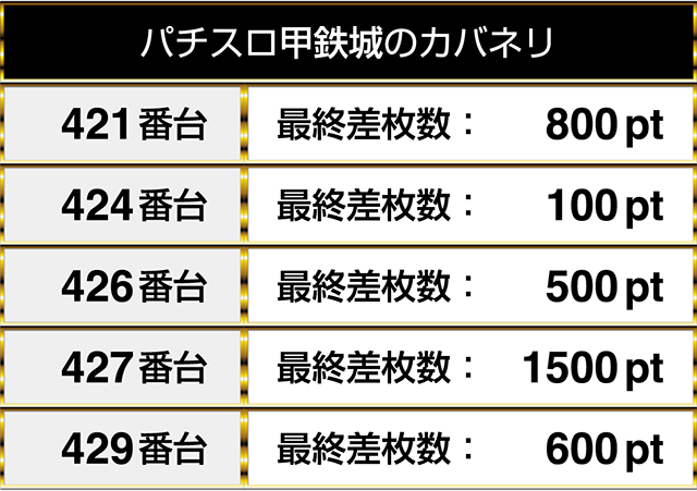 設置台数や機種のスペックを問わずに、最終的には複数の台が1000pt以上を記録していた。