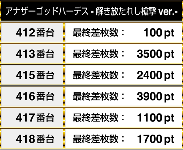10台設置の『アナザーゴッドハーデス-解き放たれし槍撃ver.-』は6台がプラスpt!!