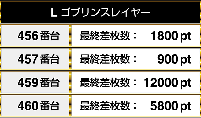 『Lゴブリンスレイヤー』は5台設置で、マイナスptになったのは1台のみ。
