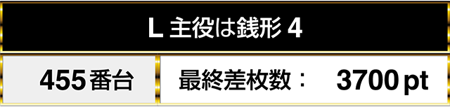 新台である『L主役は銭形4』の455番台は3700ptとなった。
