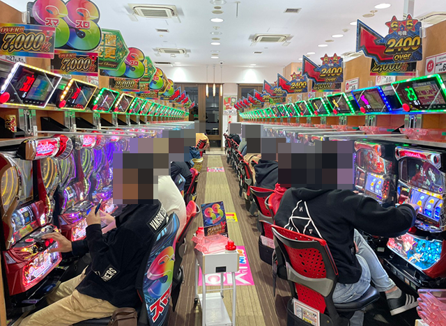 スマスロをはじめ、さまざまな機種が支持されていた「やすだ三郷店」。笑顔に彩られているステキなホールであった。