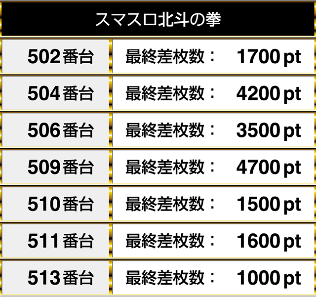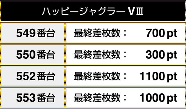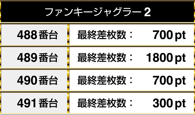 『ファンキージャグラー2』と『ハッピージャグラーVⅢ』は4台がプラスptとなった。
