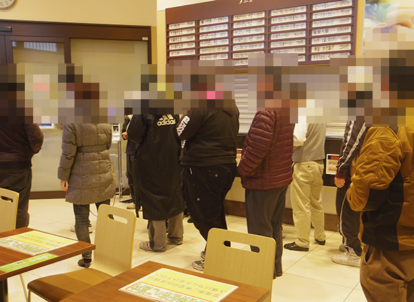 この日は、朝イチから約40人のプレイヤーが集まっていた。開店前から併設されている食事処の一部が開放されているため、寒さを感じることなく、開店時間をむかえられる印象を受けた。
