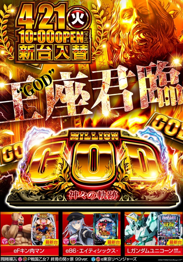 地域最速導入❗Lミリオンゴッド明日登場🌈10時オープンです❗