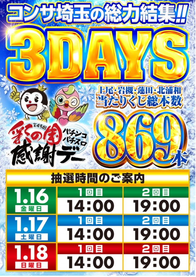 周年月の週末到来‼コンサ蓮田で‼連日10時オープン🎉🎉