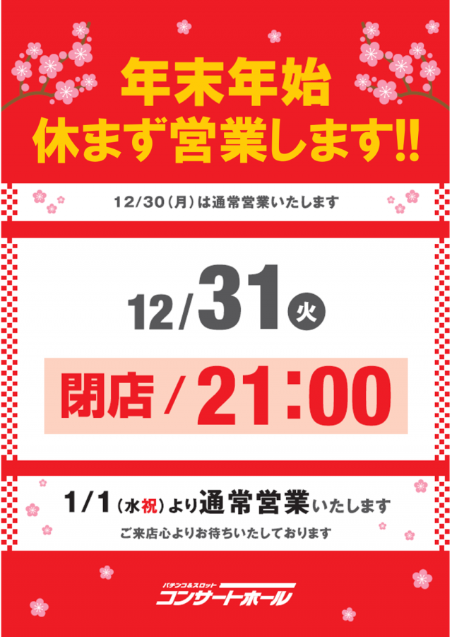 年末年始営業時間のお知らせ