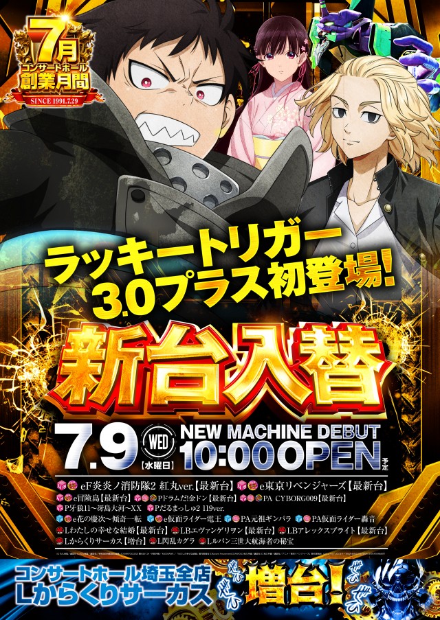 ※新台検査の為、開店時間を変更する場合があります。新台のご案内