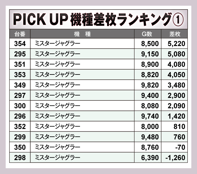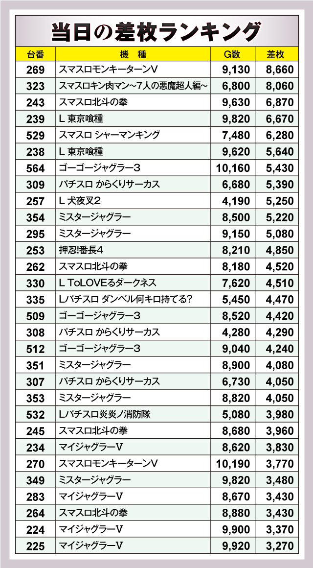 ※差枚数順に掲載しています。