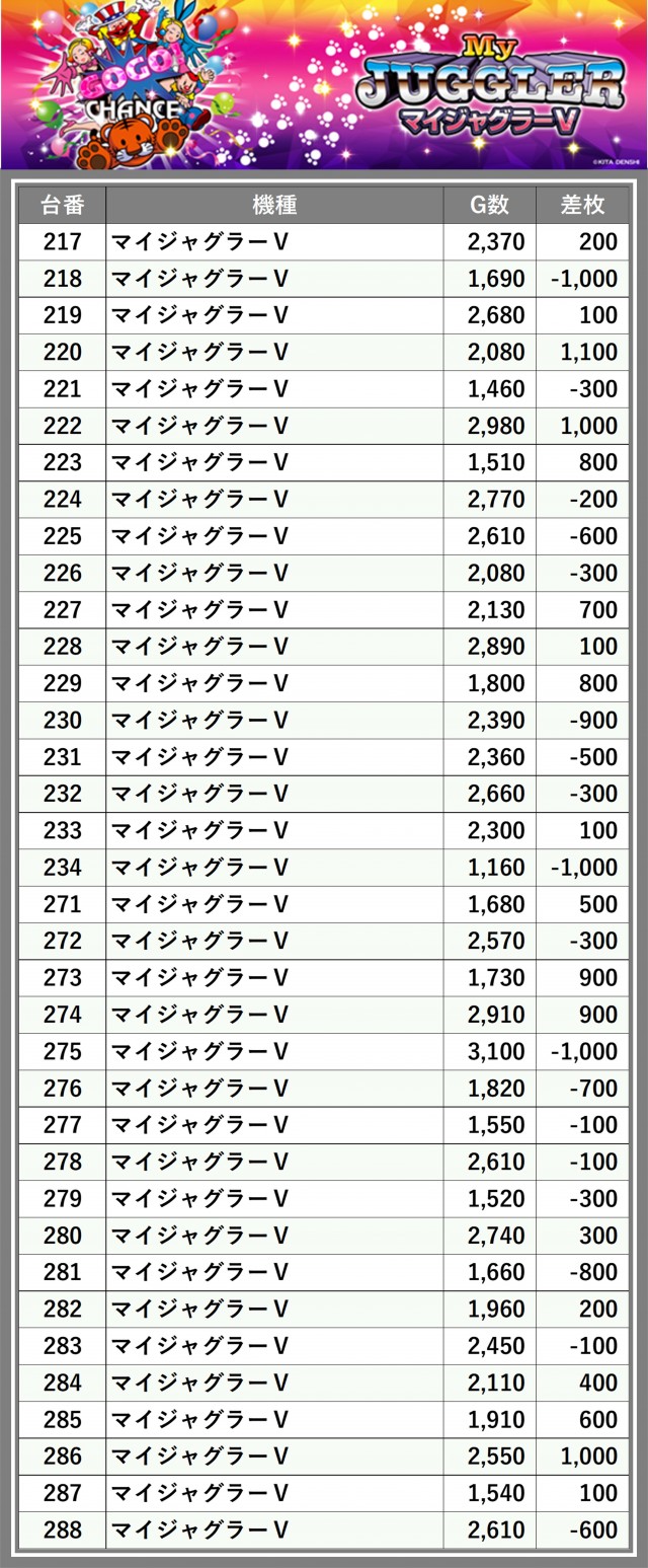 厳選された取材対象機種をはじめ、その他スロット全体から好記録が飛び出した!プレイヤーが楽しんだ1日を下記データにて振り返ってみて欲しい。