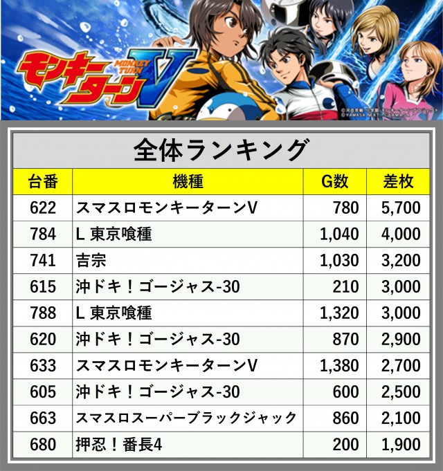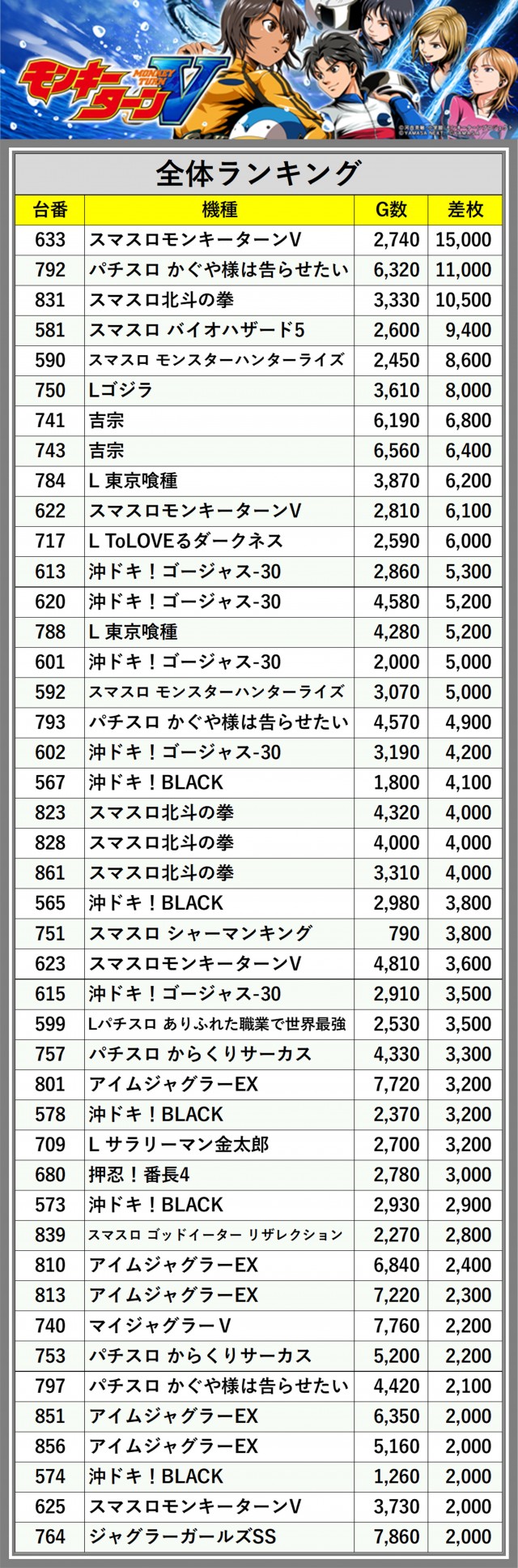 ※差枚数順に掲載しています