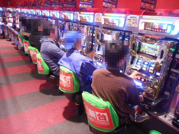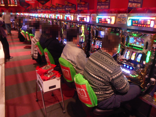 入場したプレイヤーの多くが目指したのは20円パチスロコーナーの新台「パチスロ アラジンAⅡ」。開店直後から満席となったことから、期待されているということがわかる。