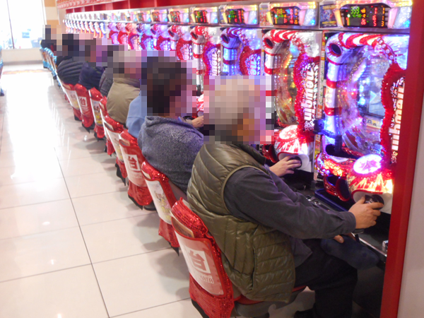4円パチンココーナーで支持されていたのは「CR真・花の慶次」や「CR牙狼 金色になれ」、「CRスーパー海物語IN沖縄3」といった機種。どの機種もほぼ満席と活気に満ちており、笑顔のプレイヤーも多数見ることができた。
