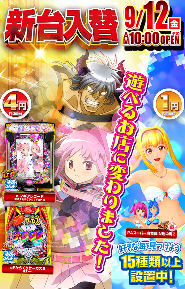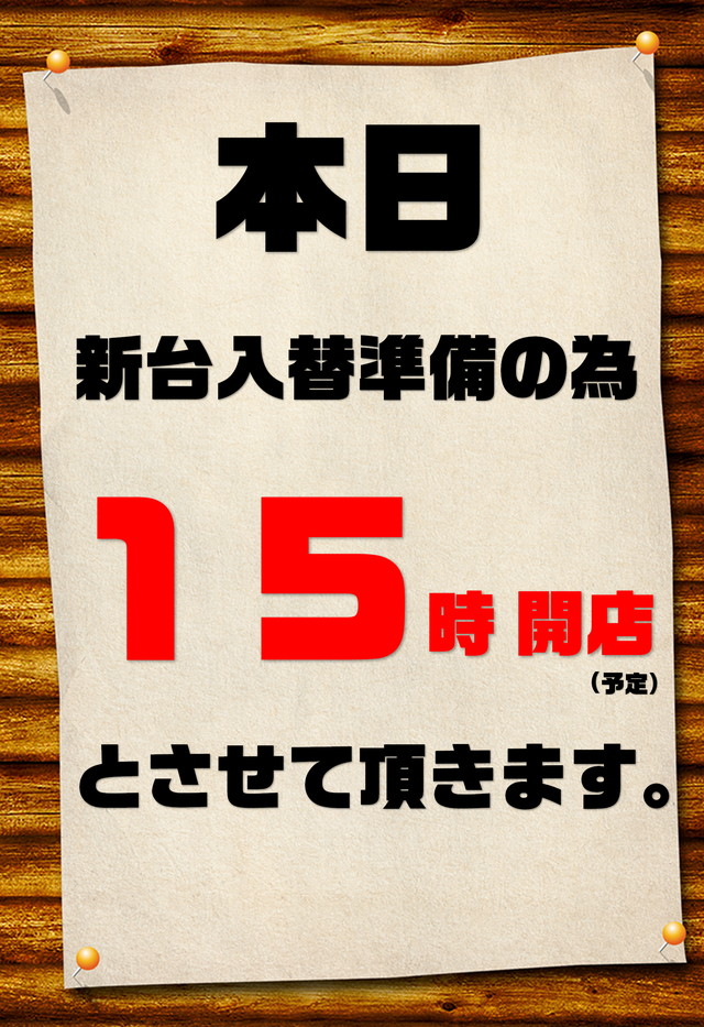 なし(新台入替の前日は15時開店予定) |