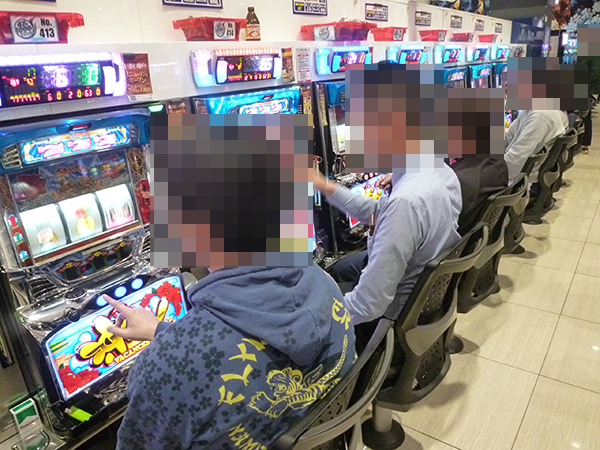 定番機種であるジャグラーシリーズも人気。活躍をみせているプレイヤーが多く、充実した時間を過ごせているように思えた。