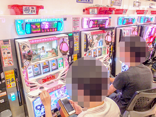 「SLOT魔法少女まどか☆マギカ」や「アイムジャグラーEX-AE」、「バーサス」なども活況の様子。理想的な展開を迎えたプレイヤーたちと出会うことができた。