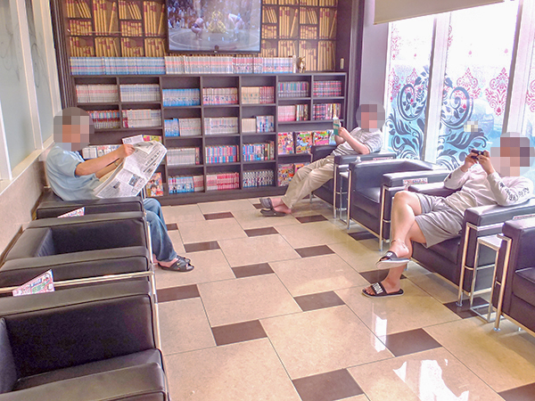 レストスペースにはテレビや幅広いジャンルの漫画本が用意されており、取材時も楽しんでいるプレイヤーが多かった。