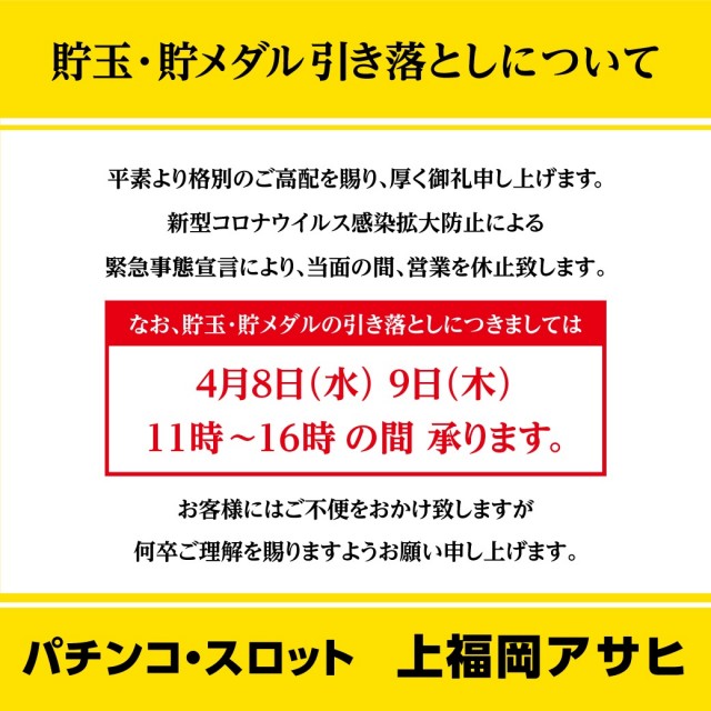 上福岡アサヒ 臨時休業のお知らせ