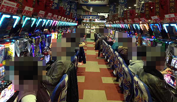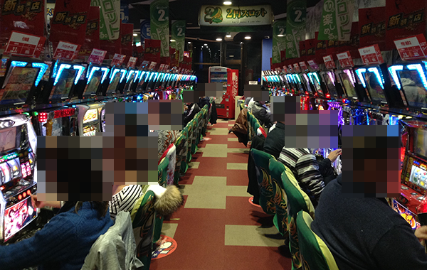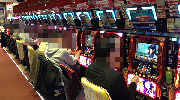 低貸し玉コーナーにもプレイヤーの姿は多く、どちらもほぼ満席となっているほどの盛況ぶり。