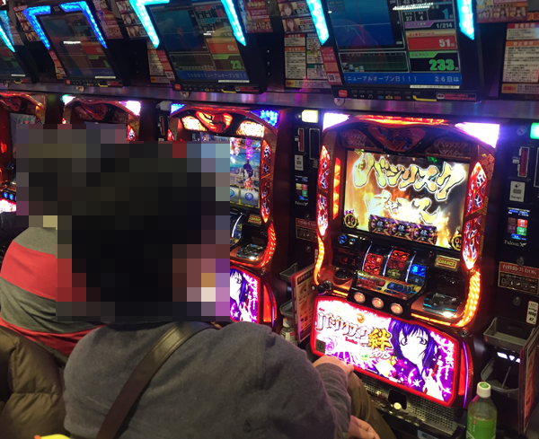 各機種の様子をみてみると、1000円/47枚パチスロでは「バジリスク〜甲賀忍法帖〜絆」、「SLOT魔法少女まどか☆マギカ」といった定番機種が満席状態。機種の魅力を引き出しているプレイヤーも多かったように思う。