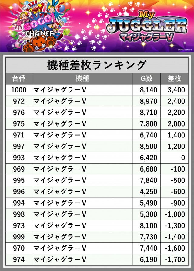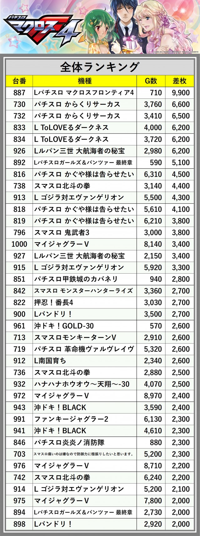 厳選された取材対象機種をはじめ、その他スロット全体から好記録が飛び出した!プレイヤーが楽しんだ1日を下記データにて振り返ってみて欲しい。