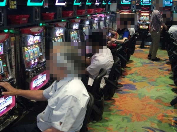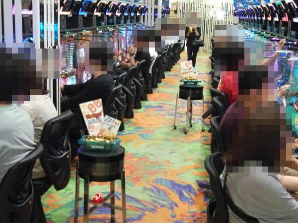 そのほかにもジャグラーシリーズや「パチスロ北斗の拳 転生の章」など、納得といった表情で遊技をしているプレイヤーの姿を、さまざまなシマで見ることができた。