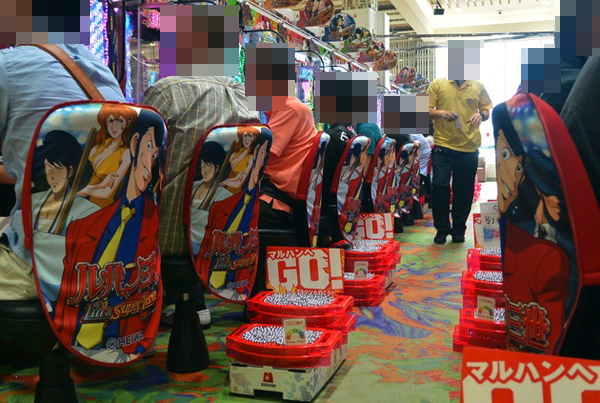 午前中は稼働にバラつきのあったパチンココーナーだったが、午後になるとほぼ全台が埋まるほどの盛況ぶりだった。